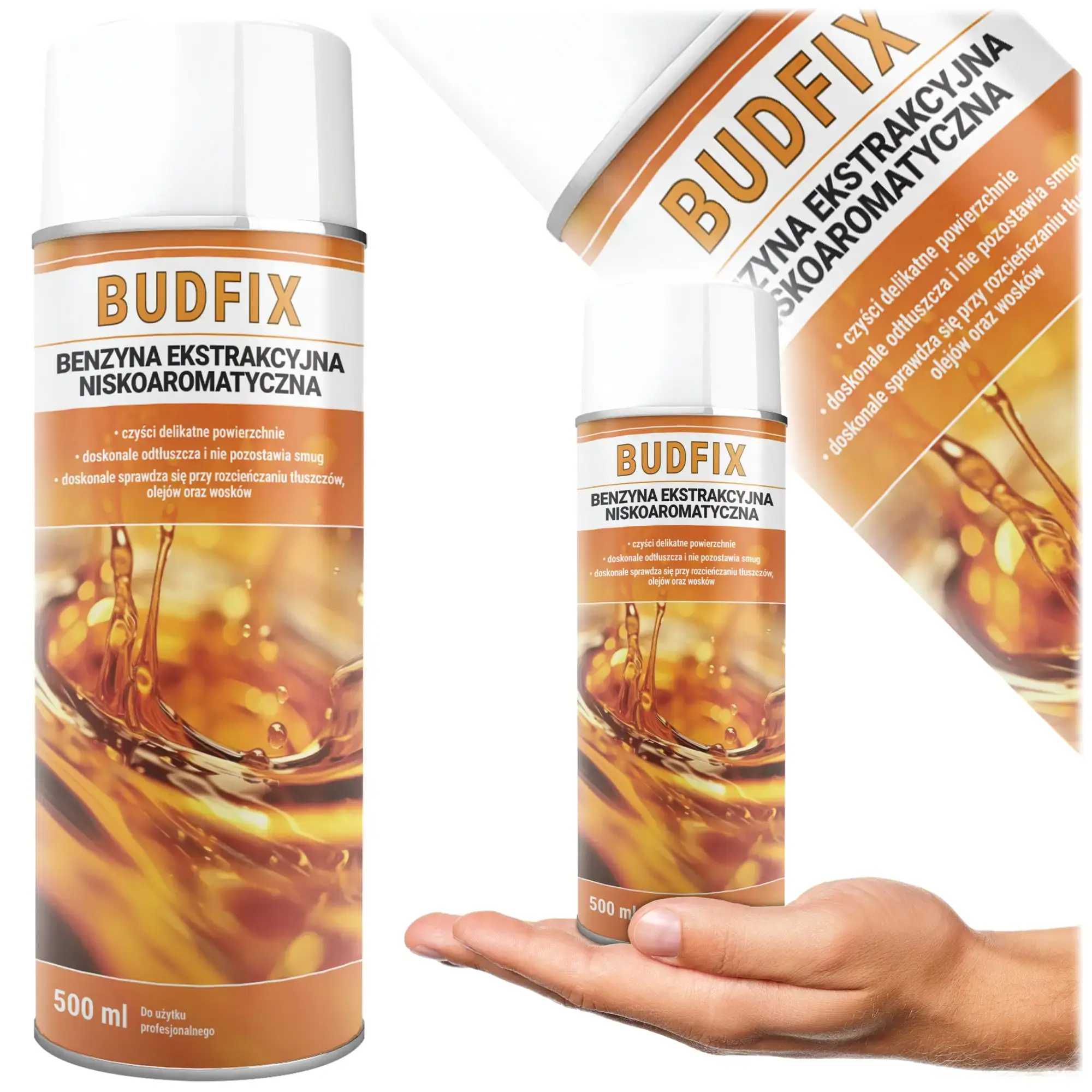 Benzyna Ekstrakcyjna Niskozapachowa Spray 500ml Odtłuszczacz Budfix