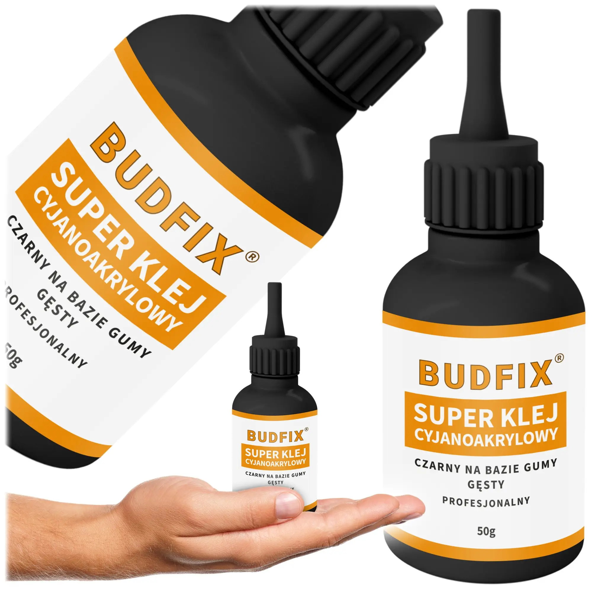 Klej Cyjanoakrylowy Sekundowy Czarny Elastyczny Gęsty 50g (50ml) Budfix Rubber Toughened