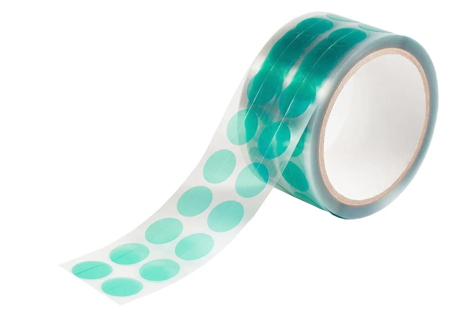 Kółka termiczne fi 54mm wykroje maskujące wysokotemperaturowe pet zielone do lakierni proszkowych rolka 1000 sztuk