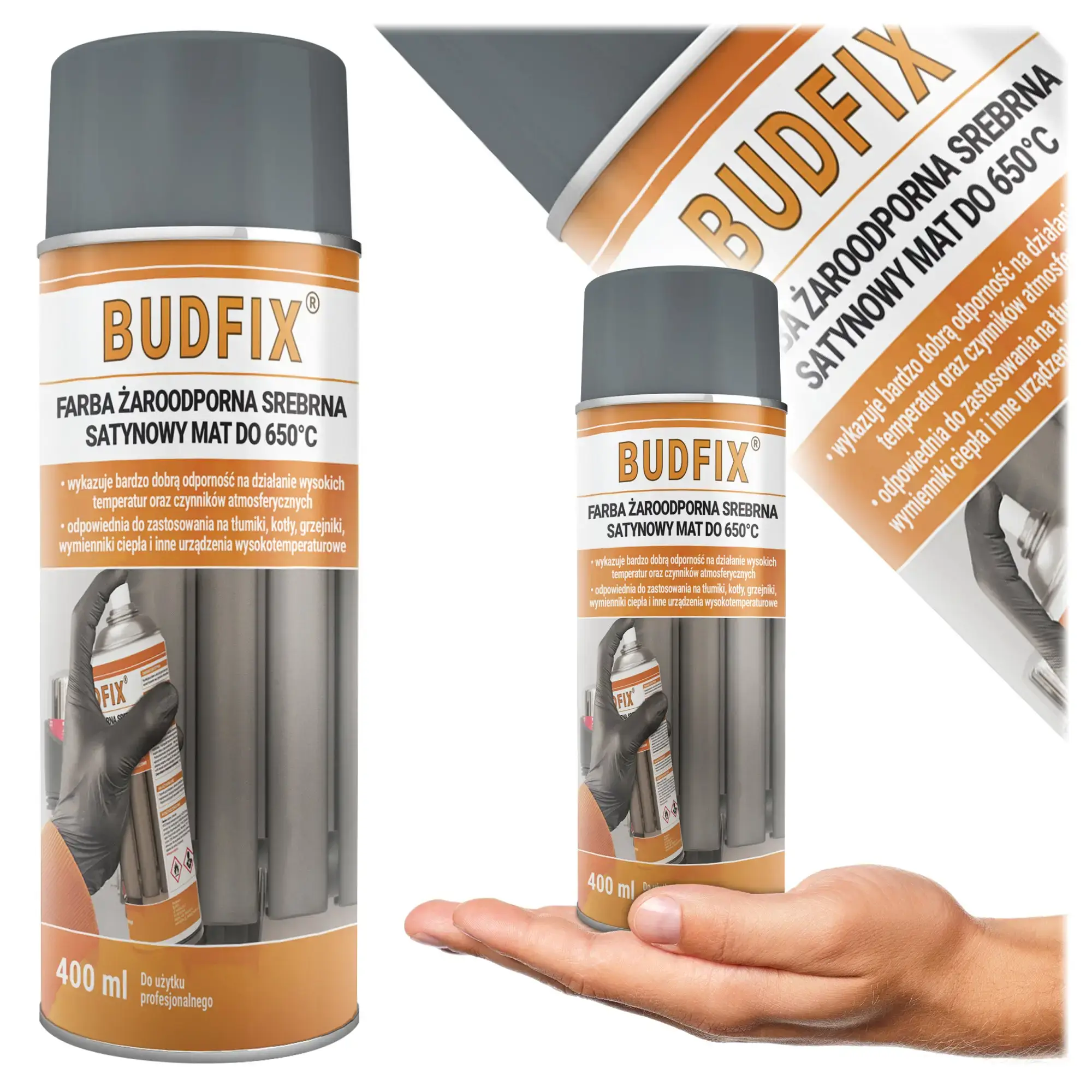 Lakier Termiczny Wysokotemperaturowy Srebrny Satynowy Mat 650°C 400ml Budfix