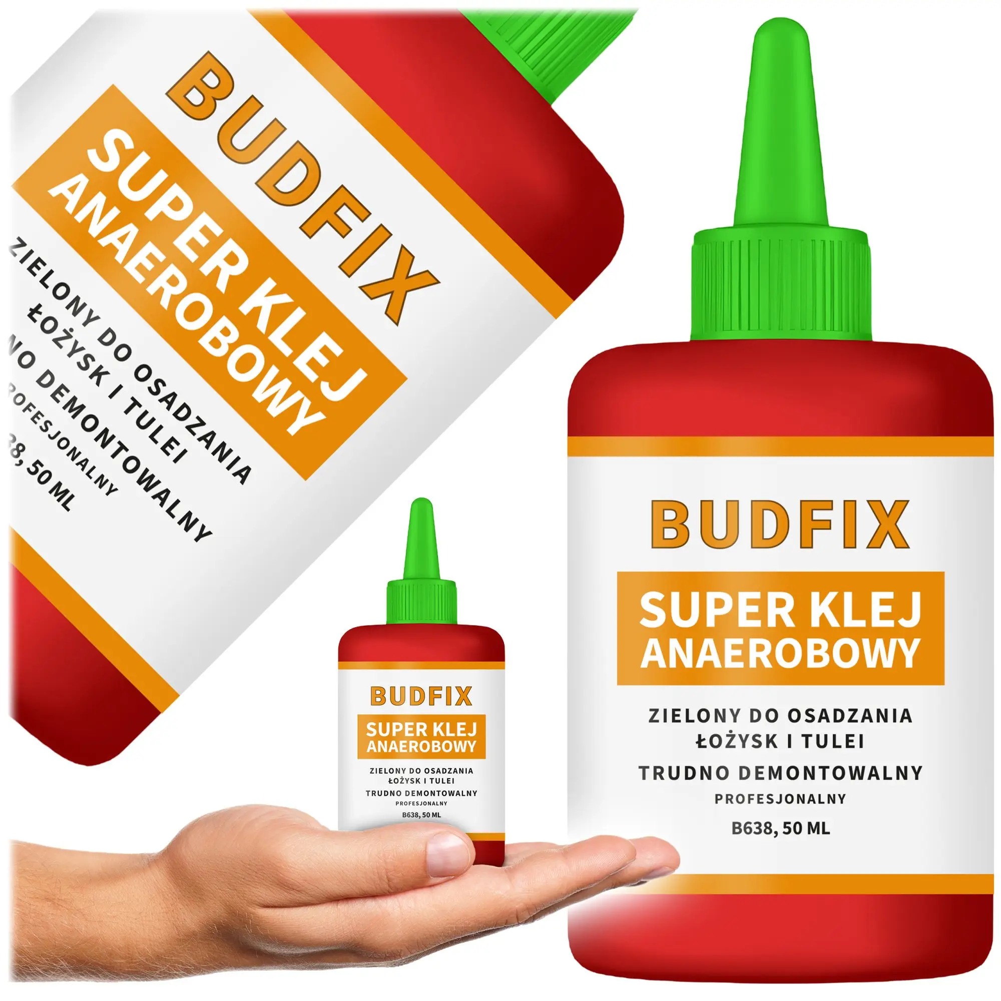 Zatrzymaj się. Oto Budfix 638 50ml – nasz absolutny hit sprzedaży w kategorii utrzymania ruchu. To najmocniejszy klej do łożysk w ofercie, zamknięty w charakterystycznej czerwonej butelce przemysłowej. Ten zielony, gęsty anaerob działa jak "płynny metal", wypełniając luzy aż do 0,25 mm.