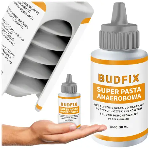 Wersja w harmonijce (50ml) to absolutny hit w warsztatach utrzymania ruchu. Dlaczego? Pasta 660 jest bardzo gęsta (nie ścieka). Wyciskanie jej ze zwykłej, twardej butelki bywa męczące. Harmonijka Budfix działa jak strzykawka, pozwalając nałożyć gęstą pastę precyzyjnie w uszkodzony rowek wpustowy lub na wyrobiony czop wału, bez użycia siły i bez brudzenia wszystkiego dookoła.
