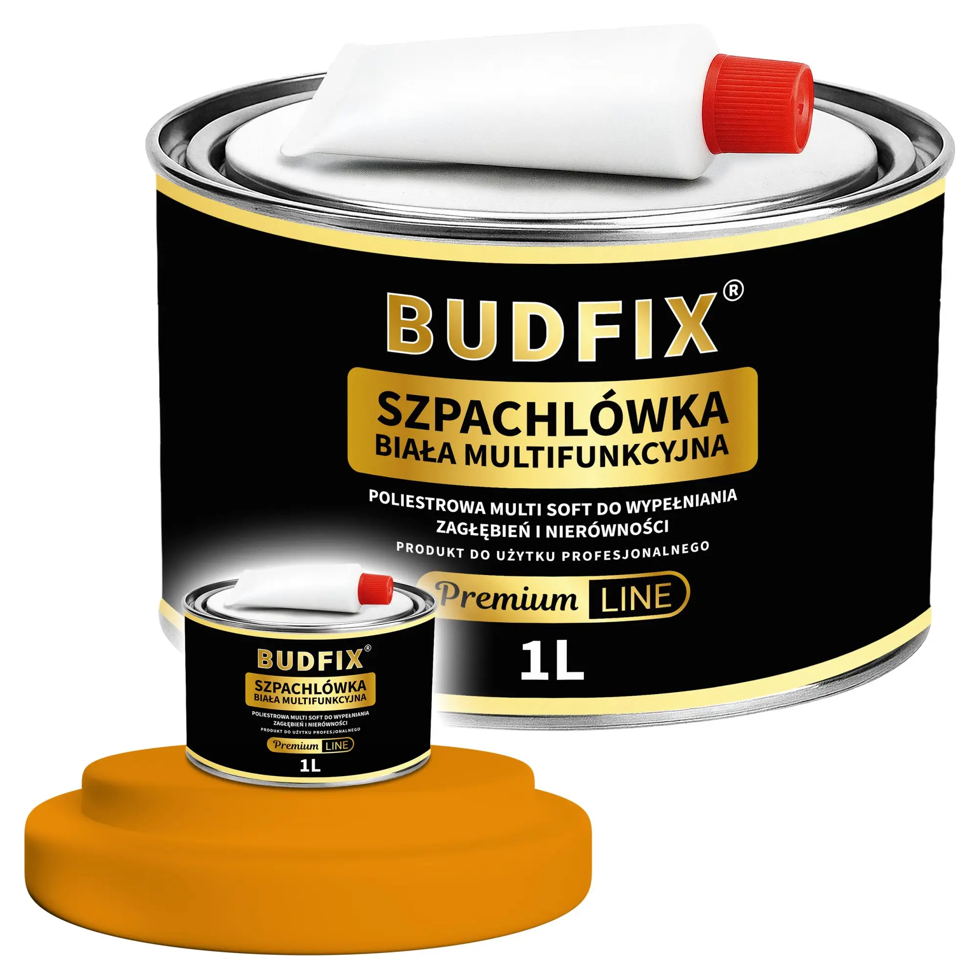 Szpachlówka samochodowa MULTISOFT 1L multifunkcyjna szpachla poliestrowa wypełniająca i wykańczająca do zagłębień i nierówności Premium
