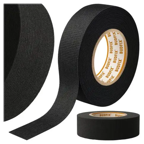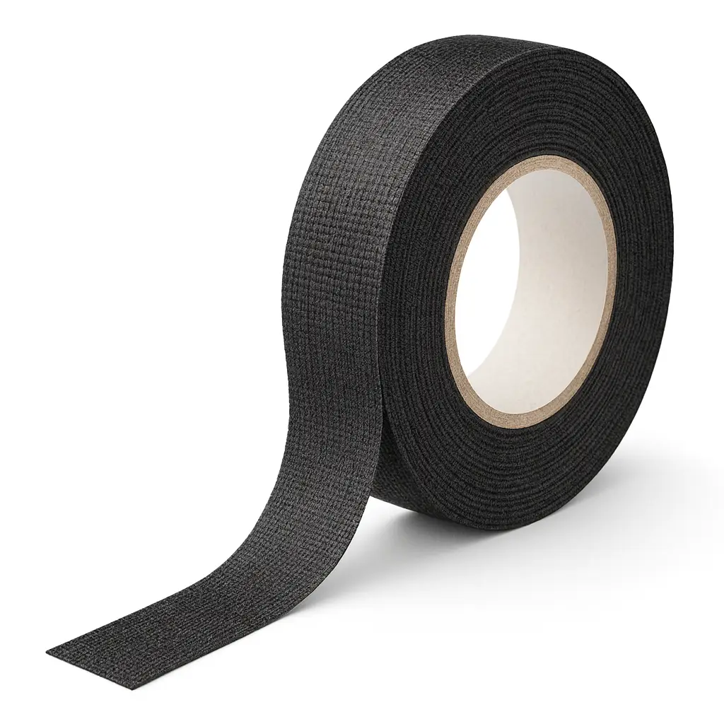✅ Wytrzymała taśma izolacyjna parciana w kolorze czarnym, materiałowa, przeznaczona do wiązkowania przewodów elektrycznych w samochodach.