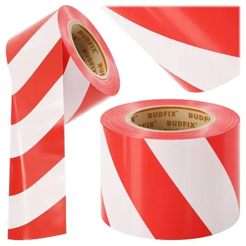 Taśma ostrzegawcza 80mm 100m ogrodzeniowa bez kleju biało czerwona do wyznaczania tras