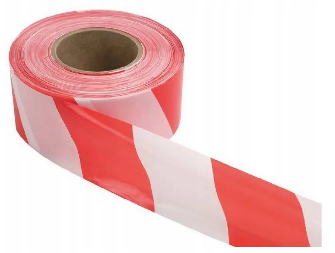 Taśma ostrzegawcza 80mm 500m ogrodzeniowa bez kleju biało czerwona do wyznaczania tras